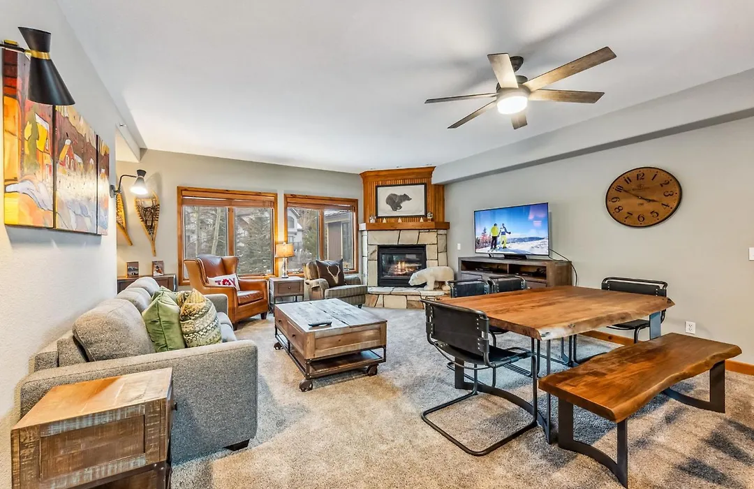 Gäste haben Zugang zu einer voll ausgestatteten Küche, ausgestattet mit einem Wasserkocher, einem Kühlschrank und Küchenutensilien. Verbringen Sie einen schönen Abend in den nächstgelegenen Restaurants Modis und Crepes A La Cart, die in 6 Gehminuten Entfernung von der Villa Ski In Out Breckenridge Condo With Shared Hot Tubs ist. Die Seilbahnstation Village Carpet A befindet sich in der Nähe, und zwar ungefähr 450 Meter von hier entfernt.